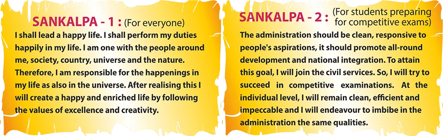 Those who have made their decision to become ‘Sadhakas’ in their own chosen walk of life take the following resolve (Sankalpa). The word ‘Sankalpa’ indicates a strong decision – a resolve that one consciously makes with oneself, within one’s own mind, heart and soul. Concept of ‘Sankalpa’ at Chanakya Mandal Pariwar is one small, but significant expression of the ultimate principle of responsibility, of accountability : that is : one is ultimately accountable – answerable to one ‘Self’. As of now two ‘Sankalpa’ are suggested for every one at Chanakya Mandal Pariwar : First Sankalpa is for everyone and the second one will differ from profession to profession. One presented here is for those who want to join civil services. Taking ‘Sankalpa’ is certainly not compulsory – that is against the spirit of ‘ Sankalpa’. Only when one really wants to make such a resolve, to oneself, is this ‘Sankalpa’ to be taken.