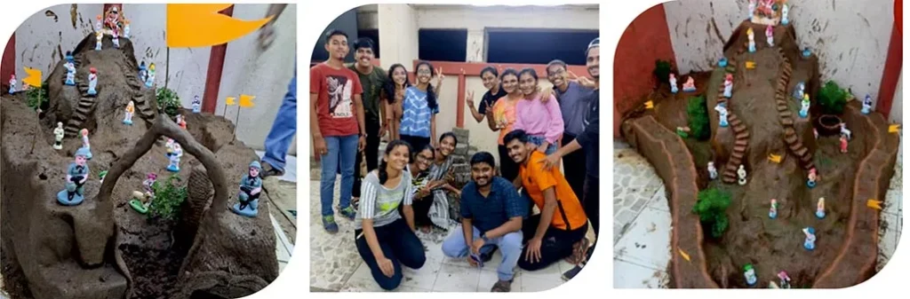 The first term of the foundation course ends with a fort building activity. In this, groups of students are formed and assigned the responsibility of building a fort. The fort of the students is completed before Diwali.