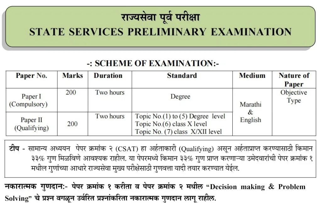 1. Candidates will have the option to answer the question papers in Marathi or English for Paper 3 to 7.