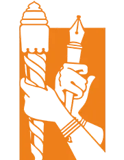 Set in saffron, the representative color of the Indian heritage, the color of saint poets and also the color of warriors and crusaders. This logo consists of hands holding pen in one hand and ‘धर्मदड/टराजदंड (Dharmadanda or Rajdanda) in the other hand-the mast of ‘Dharma (duty-consciousness) and the mast of administration, discipline, equality of justice, and ethics of administration. The hand is that of a woman and also that of a man.