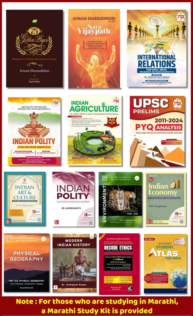 Complete Preparation for Prelims Exam (GS+CSAT), Main Exam (GS I, II, III, IV, Essay, English & Marathi) and Interview.
